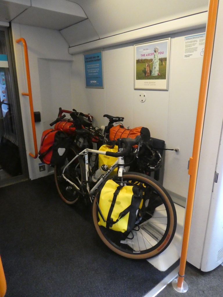 We could not prebook our bikes on the Waterloo to Portsmouth leg, it was first come first served. So after being told by a Train operative that it was leaving from platform 16, another one told us is was actually 12. So we rushed over to find the cycle car already ½ full. Strolling up the train we found the second and final cycle car empty. We filled it.