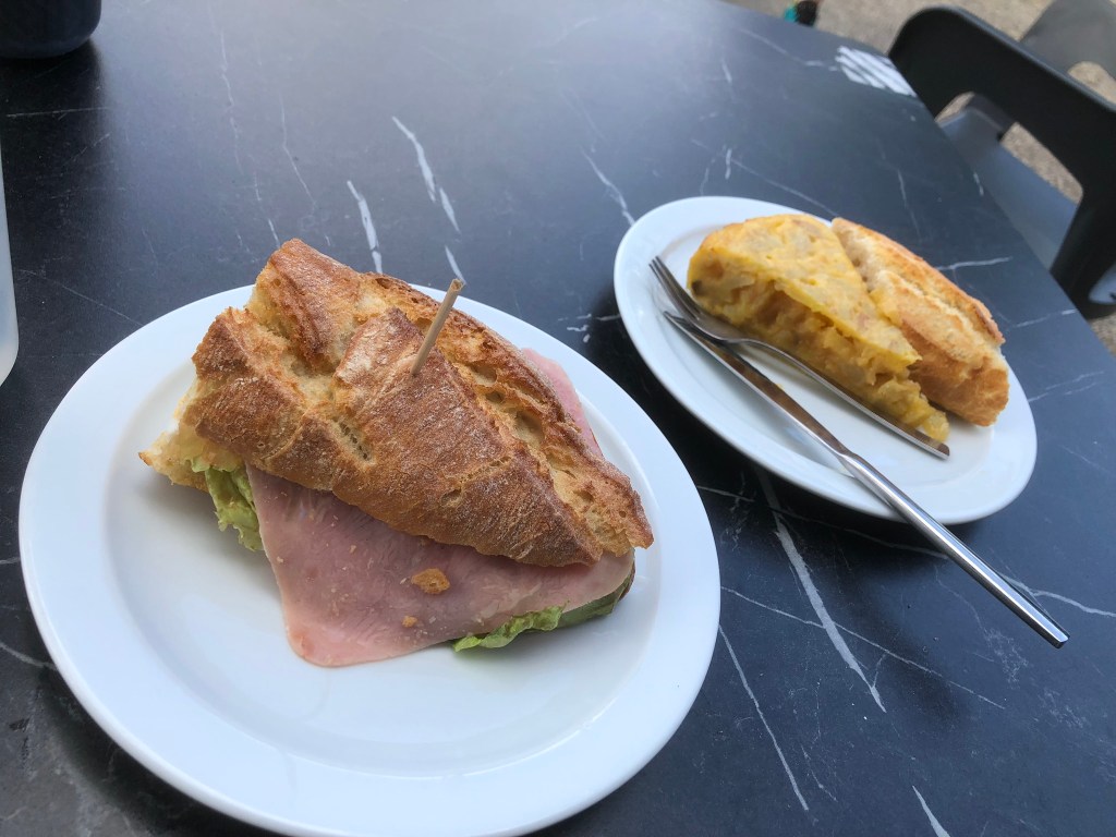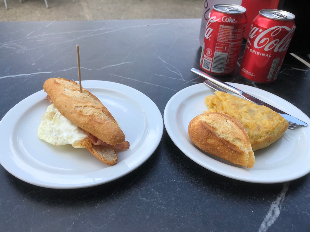 For lunch we have stopped off at bars and consumed a few of the pre-prepared nibbles on offer. Here is what we had today, with two cokes this was only 11 Euros, tip top.