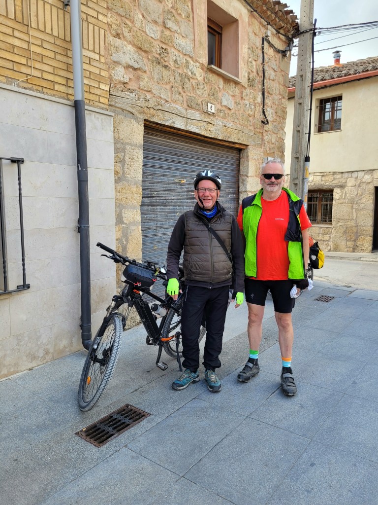 We also met Christian (normal) today. A rather nice French chap who is ‘cycling’ on his electric bike. To be fair he did explain that his bike was an old model and only had a range of 20km, so only used electric to go up the hills. He showed us his map that had a few road alternatives and insisted Karen take photos of all the maps. These will come in useful in order to dodge the rough tracks. Here is Christian and I. He is rather wrapped up, but it was very warm.