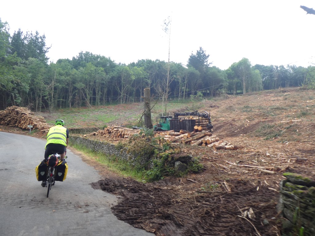 We passed through lots of forests, some of which are being harvested. You can’t see it from this shot but there is a bloke reversing a trailer laden with wood with a small tractor. He was rubbish at reversing and kept hitting the massive pile of logs.