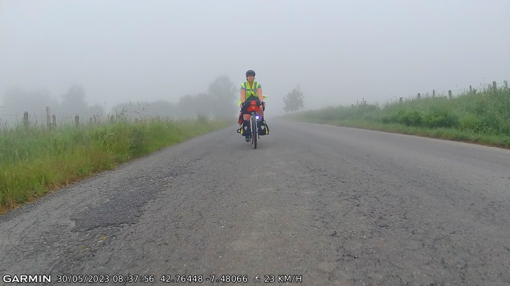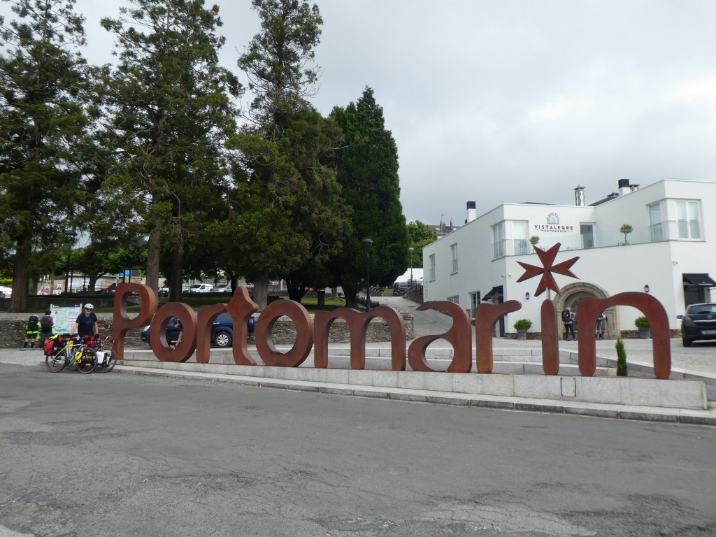 Rain was forecast for 1400hrs, and we weaved past many rain clouds, only catching the odd drop of rain. 5 mins from our digs in Arzua it got very grey and dark. Then the lightening sparked up which rather encouraged a faster pace. As we got within 100m of our digs the heavens opened up. It was a mad race for the reception porch. We made it, just moist. It was a really good day’s riding today – 86kms with 1,720m of climbing, including quite a few climbs of 8-12%. No team talk required today, spirits are high. The team is happy, the leg muscles are a bit sore.