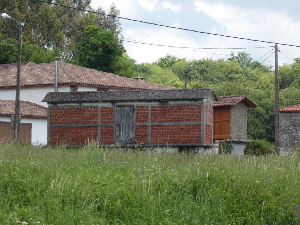 Along the route we saw many of these buildings, long structures often high off the ground with wooden slatted sides (the one in the fore ground has been bricked up). We thought maybe they were for burials, or perhaps curing meat. But our host later told us they were used for drying grain many years ago and are no longer used.