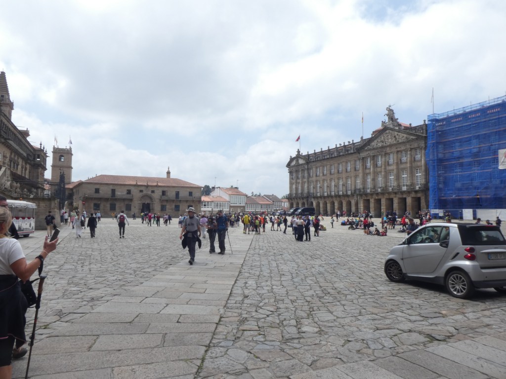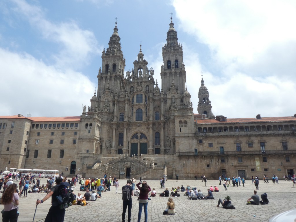 On arrival at the cathedral, the end of the pilgrimage, there were many pilgrims in the plaza. Some in quiet contemplation, others mildly excited and some groups absolutely ecstatic, sort of winning the lottery ecstatic. Some just sunbathed, or perhaps they had passed out. Bearing in mind we had seen the arrival of pilgrims at many towns, the numbers seemed a tad high, the pilgrimmetric flow was huge, so I remain unconvinced they had all completed the walk.